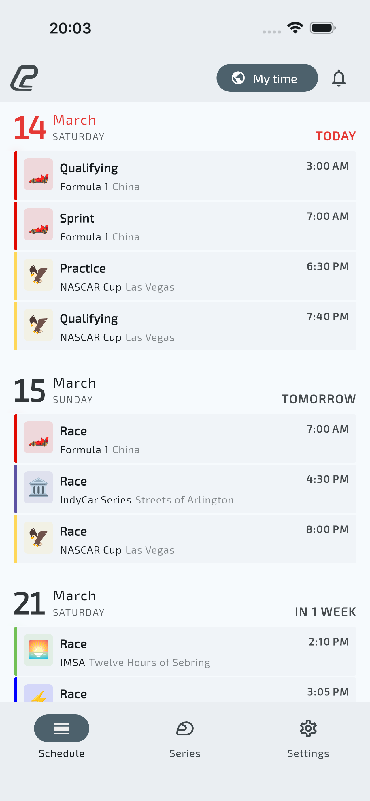 Practice, Qualifying, and Races from the world's top motorsport.