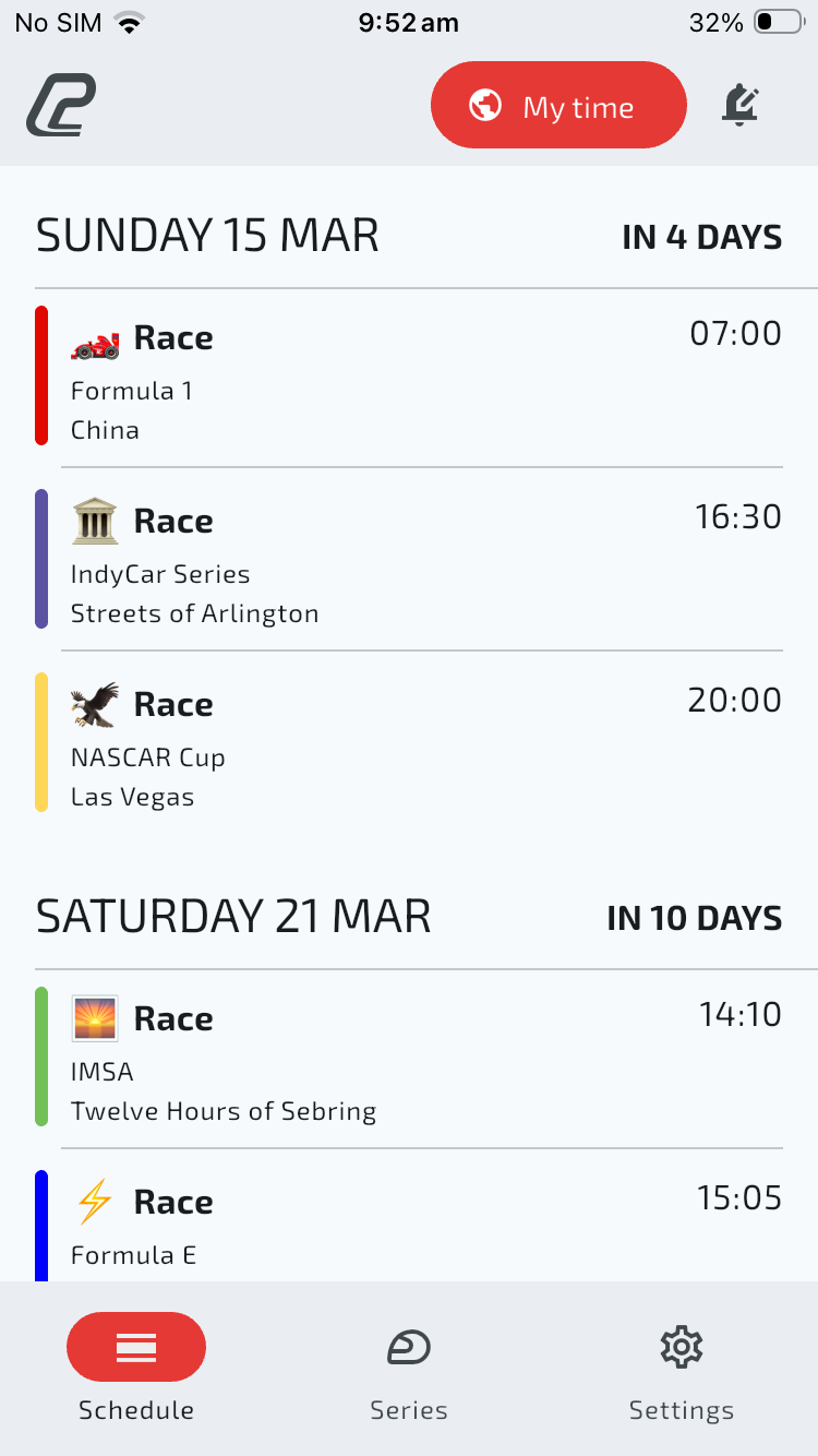 Sync your racing schedule with your personal calendar.